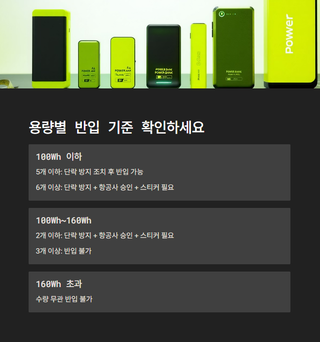 1. 용량별 보조배터리 반입 기준