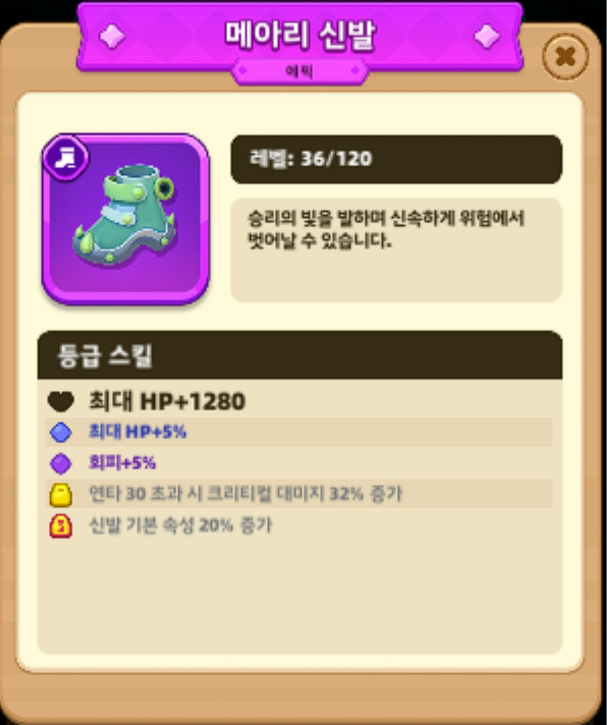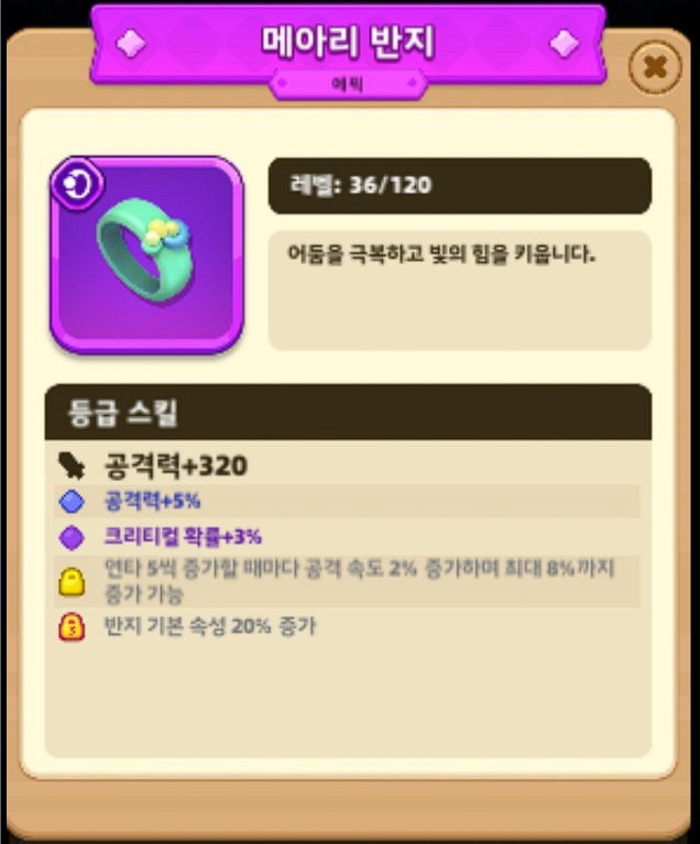 - 위 아이템들 등급은 전설(노란색)까지만 강화 추천